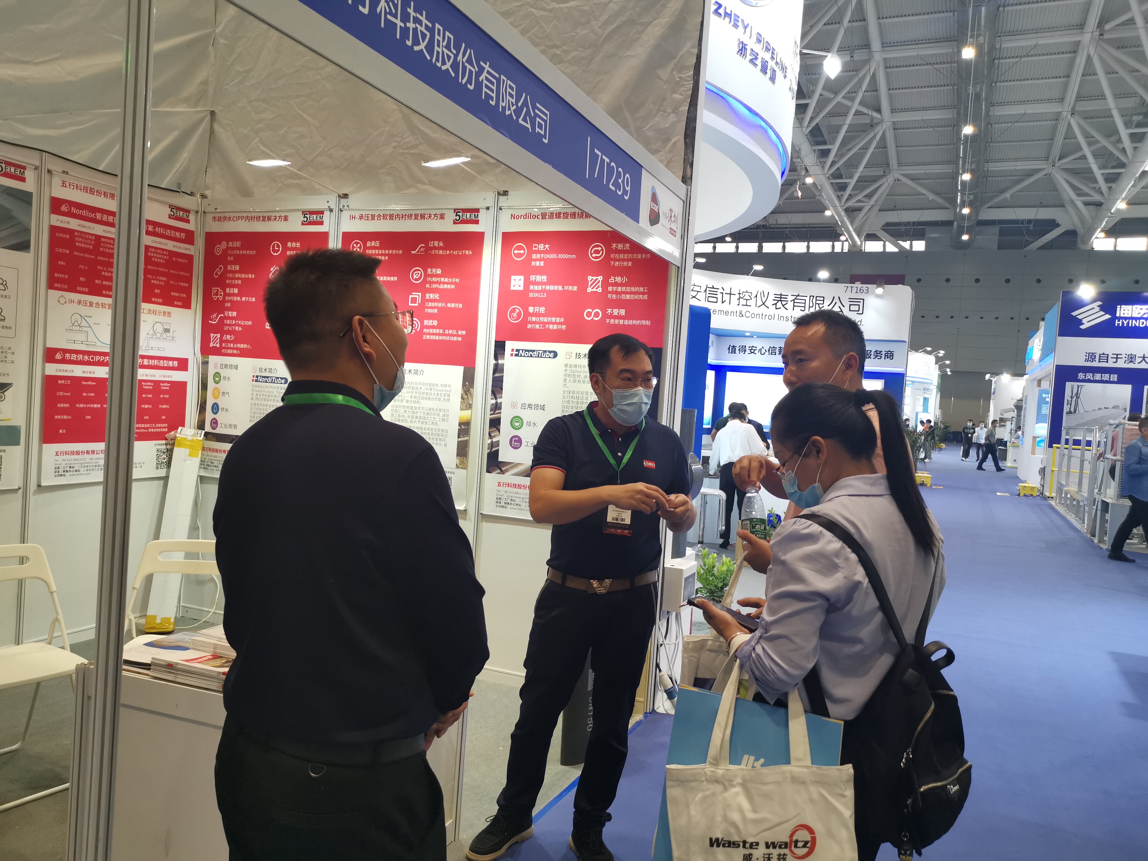 展會(huì)以“留住青山綠水,探索產(chǎn)業(yè)藍(lán)?!睘橹黝},旨在推動(dòng)生態(tài)環(huán)境科技創(chuàng)新交流和產(chǎn)業(yè)發(fā)展,促進(jìn)生態(tài)環(huán)境對(duì)外交流與合作,更好地服務(wù)污染防治攻堅(jiān)戰(zhàn)和高質(zhì)量發(fā)展。因此,五行科技攜帶“Nordiloc管道螺旋纏繞解決方案”、“市政供水CIPP內(nèi)襯更新解決方案”、 “IH-承壓復(fù)合軟管內(nèi)襯更新解決方案”三類(lèi)非開(kāi)挖更新的專業(yè)技術(shù)與產(chǎn)品在展會(huì)期間進(jìn)行了現(xiàn)場(chǎng)展示,助力建設(shè)優(yōu)美、清潔的城市環(huán)境,和諧、宜居的人居環(huán)境。