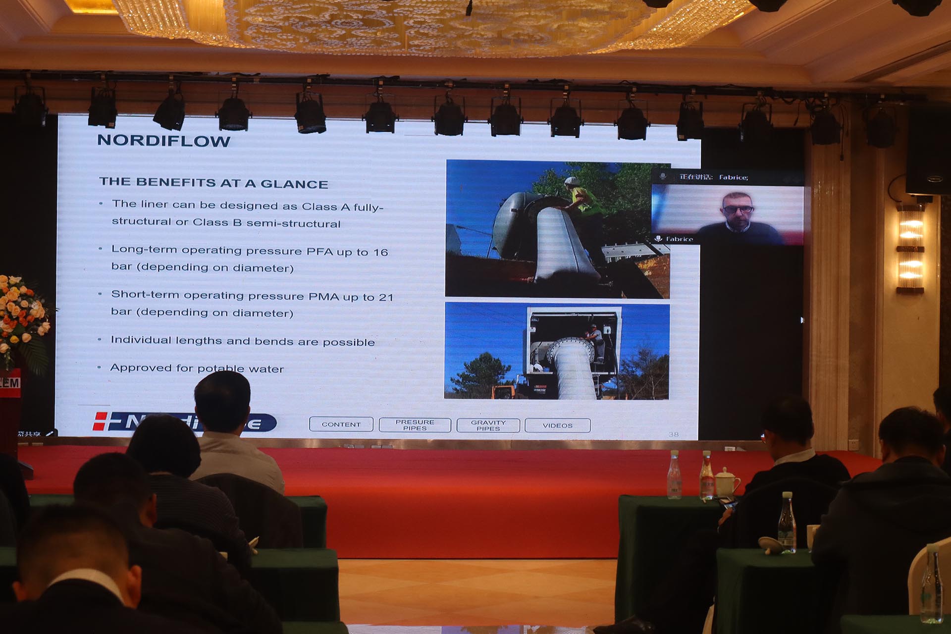 緊接著,五行科技股份有限公司總工程師秦慶戊先生分享主題演講“NordiTube給水管道非開挖更新解決方案”,與參會嘉賓共同探討城鎮供水管網更新建設,分享供水管道非開挖更新的技術成果。