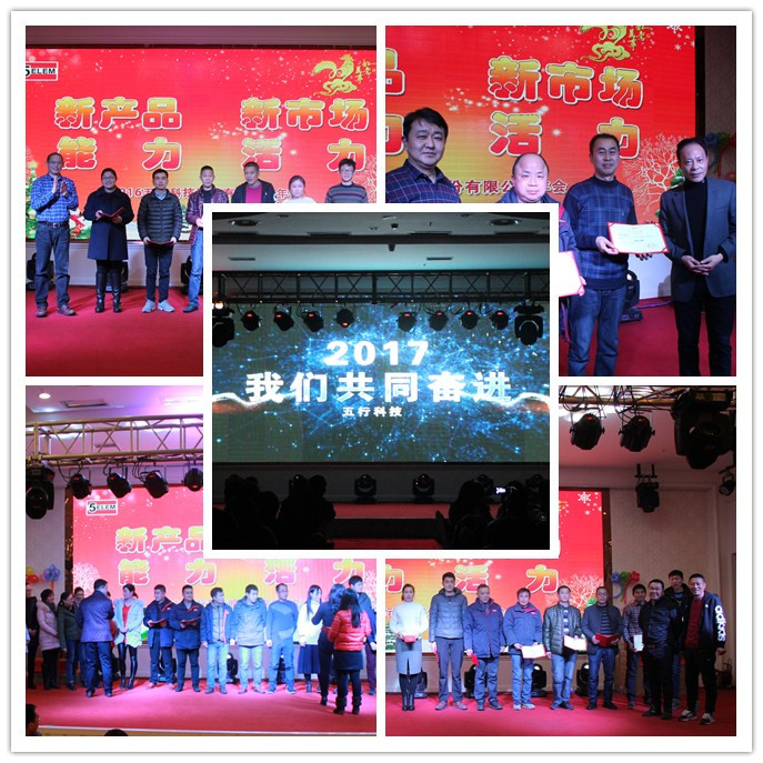 2016年12月23日晚6點50分,五行科技股份有限公司在世紀緣大酒店世紀緣廳如期舉行。本次年會由總公司辦公室主辦,主題是:新產品,新市場,活力、能力。生產班組長以上人員、先進員工以及上海、昆山辦事處的領導同仁們出席了此次年會。