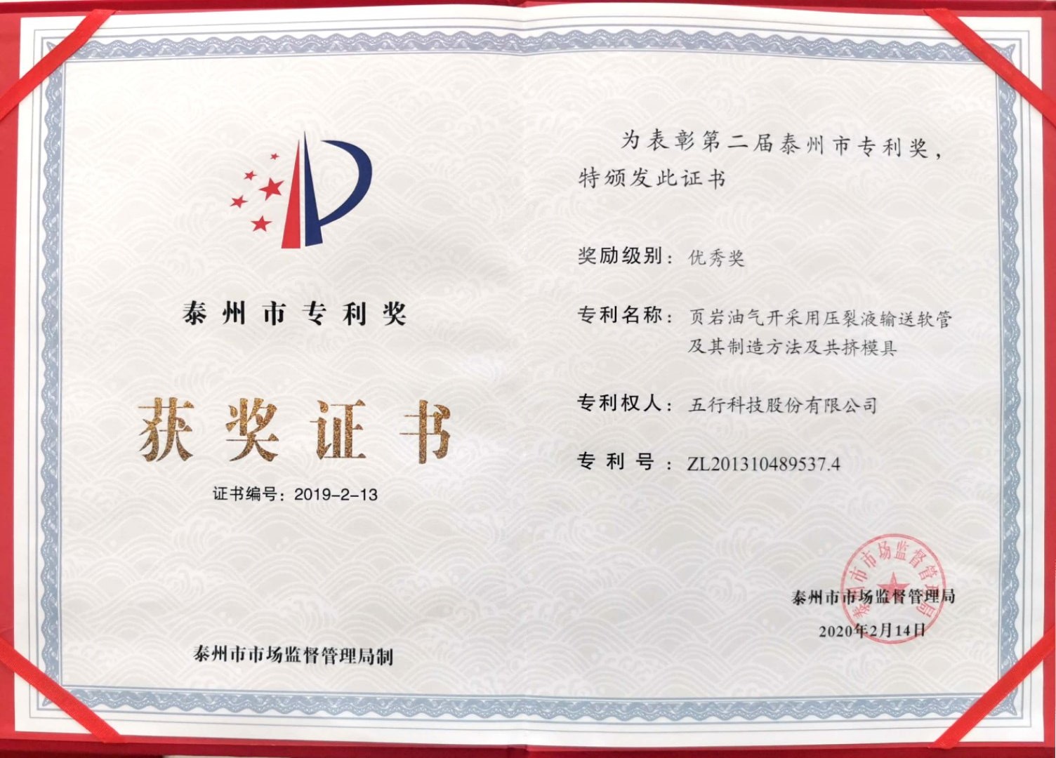 2019年度泰州市專利獎優秀獎