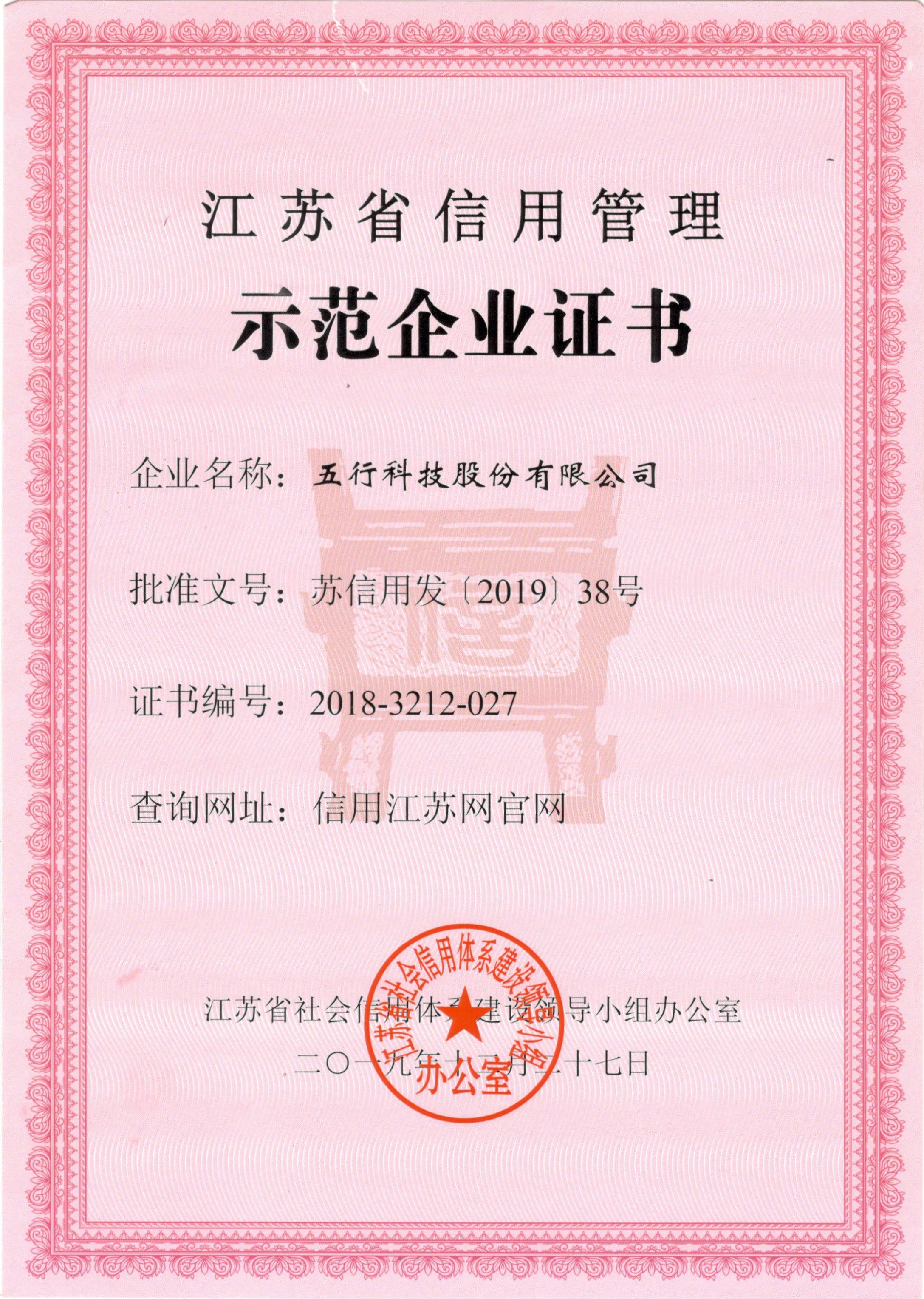 江蘇省信用管理示范企業