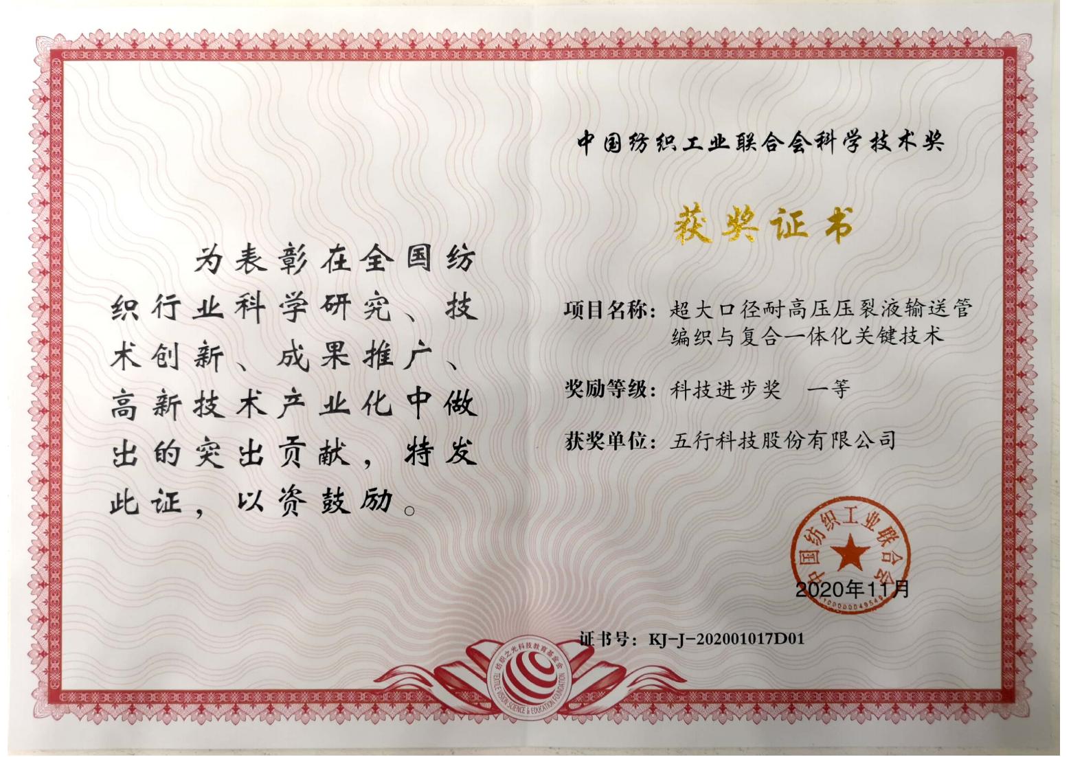 中國紡織工業聯合會-科技進步一等獎