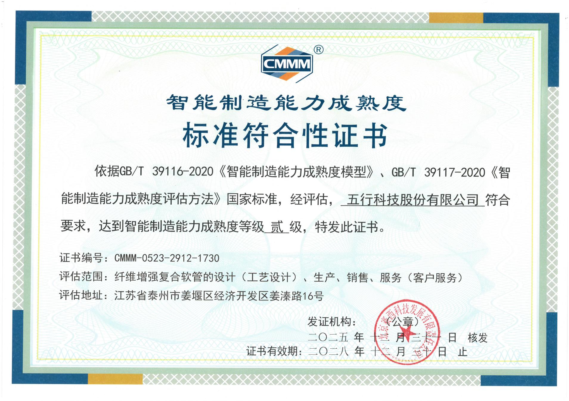 智能制造能力成熟度標準符合性證書(CMMM)