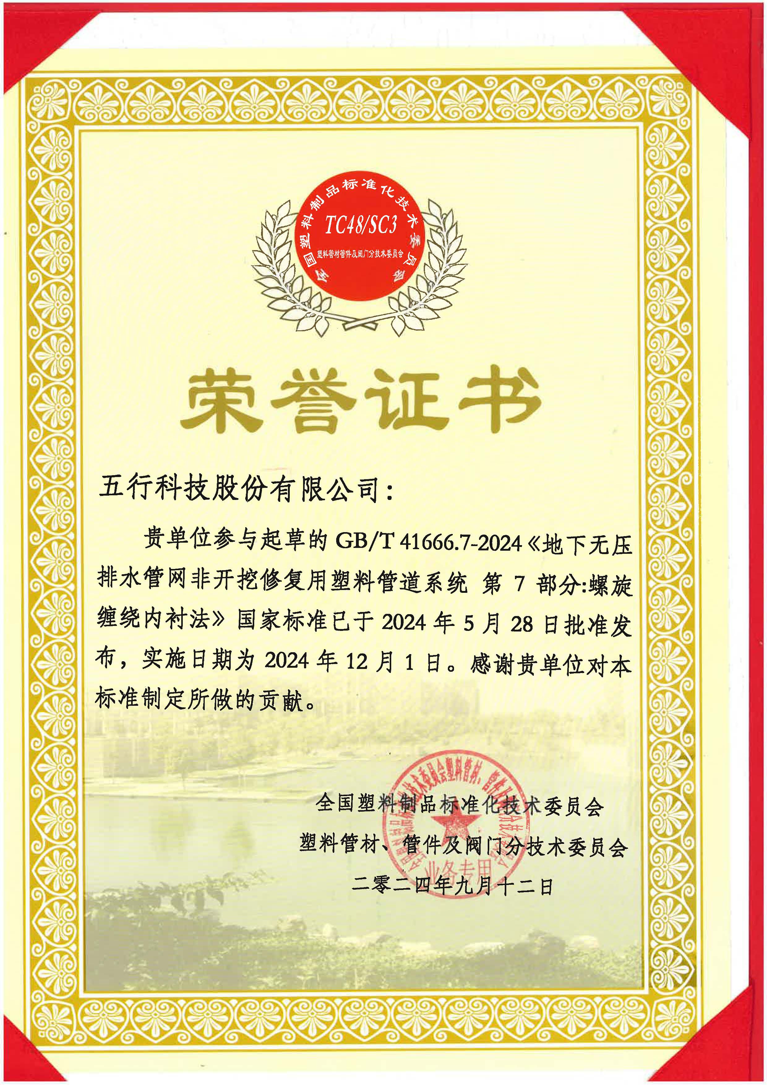 中國管網國標參編證書