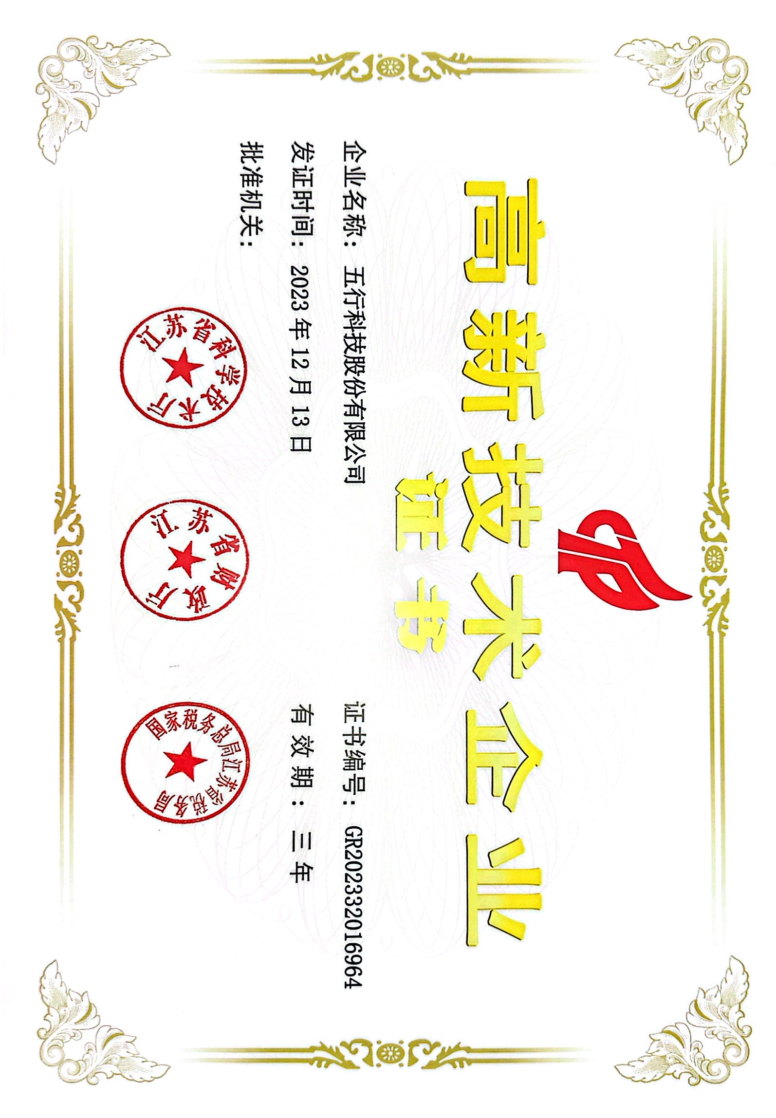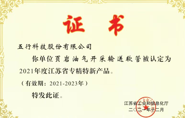 江蘇省專精特新產品證書