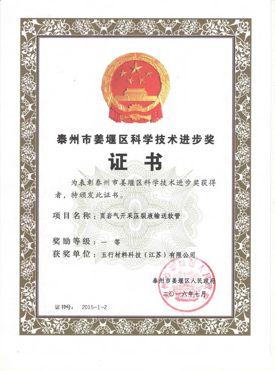 姜堰區科技進步獎